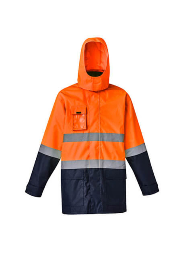 Clear ID holder on chest of outer jacket